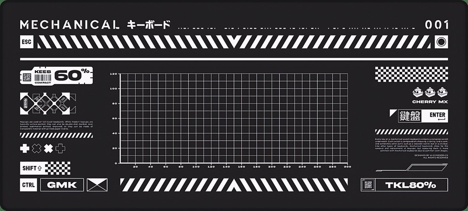 Designed for true keyboard enthusiasts, Mechanical Blueprint features a clean schematic layout inspired by compact mechanical keyboards. With industrial graphics, grid detailing, and tech-style accents, this deskmat adds a precise, professional look to any setup.