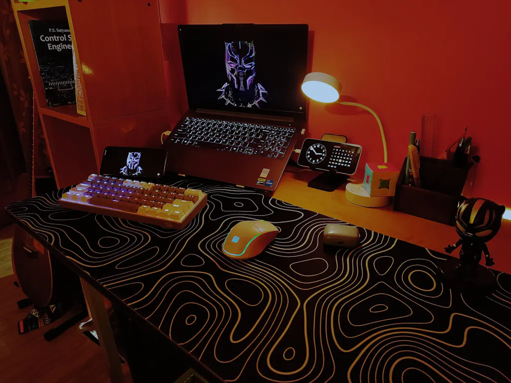 The Black Topography Deskmat completely transformed my desk space. At 90 x 40 cm, it’s generously sized — giving me more than enough room for my keyboard, mouse, and even a notebook without feeling cramped. The 2mm thickness strikes the right balance: slim enough to look sleek and modern, yet cushioned enough to make typing and long work sessions comfortable.